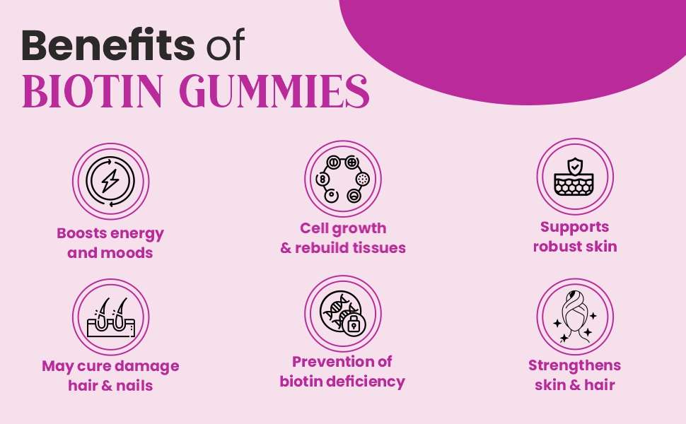 KEY BENEFITS Boosts energy and moods Cell growth & rebuild tissues Strengthens skin & hair Prevention of biotin deficiency May cure damage hair & nails Supports robust skin