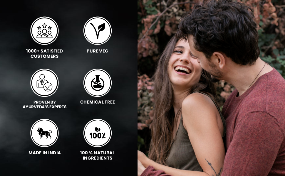 ACTIVE INGREDIENTS Tablet: Ashwagandha, Shilajit Shudh, Makardhwaj, Keshar Oil: Til Oil, Kustha, Satavari, Jatamansi DIRECTION TO USE Tablet: Take two tablets with milk in the morning and evening after meal. Oil: Take 4-5 drops of oil on palm and softly massage on intimate arcas till completely absorbed. Now enjoy soothing aroma therapy experience.