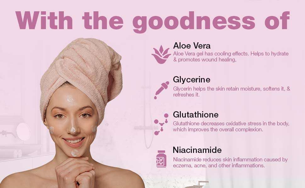 Ingredients: Aloe Vera, Glycerin, Glutathione,