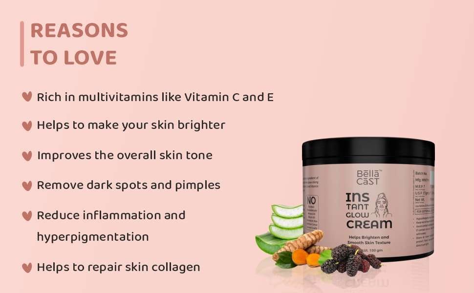 Bellacast Multivitamin Instant Glow Cream is a case cream with the main ingredient of multivitamins, which gives the skin a smooth and soft texture and also works from within to create blemish-free skin and give it a glow. Enriched with multivitamins like Vitamin C and Vitamin E, this cream brightens your skin, reduces inflammation and hyperpigmentation, and smoothes the overall texture of the skin.