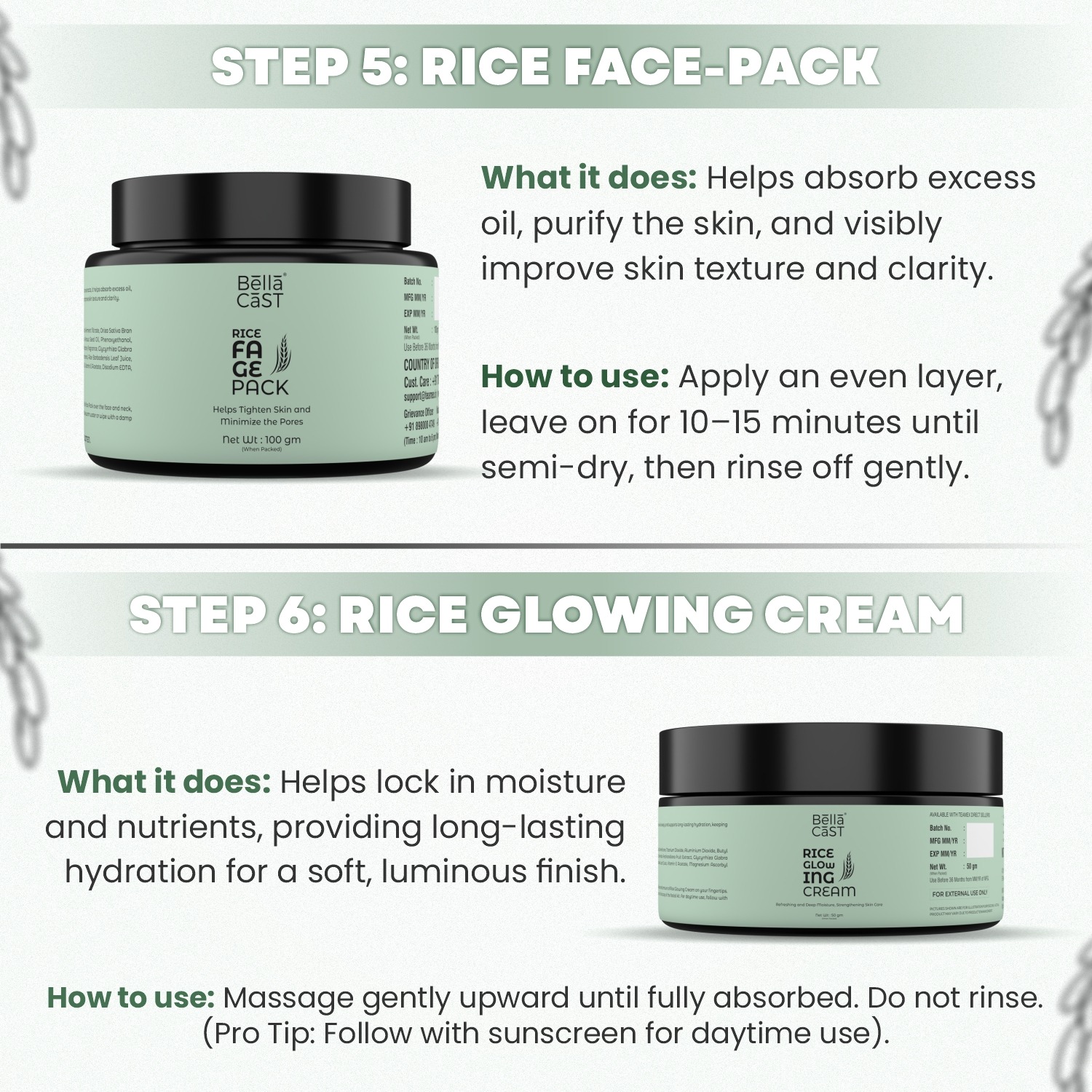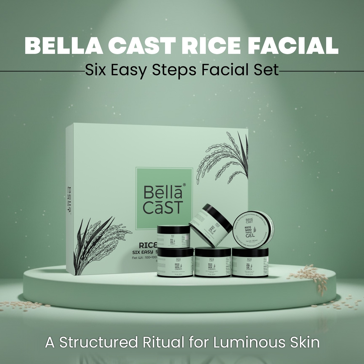 Unlock the secret to bright, glass-like skin with the BellaCast Rice Facial Kit. This 6-step system harnesses the traditional benefits of Rice extracts to deeply cleanse, tighten pores, and brighten your complexion for an even, luminous skin tone.