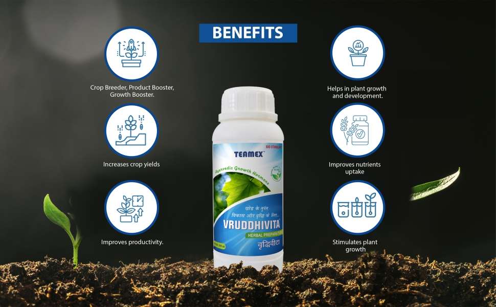The use of Vriddhivita speeds up the digestion process of the plant. The use of Vriddhivita protects against upcoming diseases and keeps the plant disease-free for a long time. *The use of Vriddhivita increases photosynthesis by developing green matter in the leaves of the plant.*