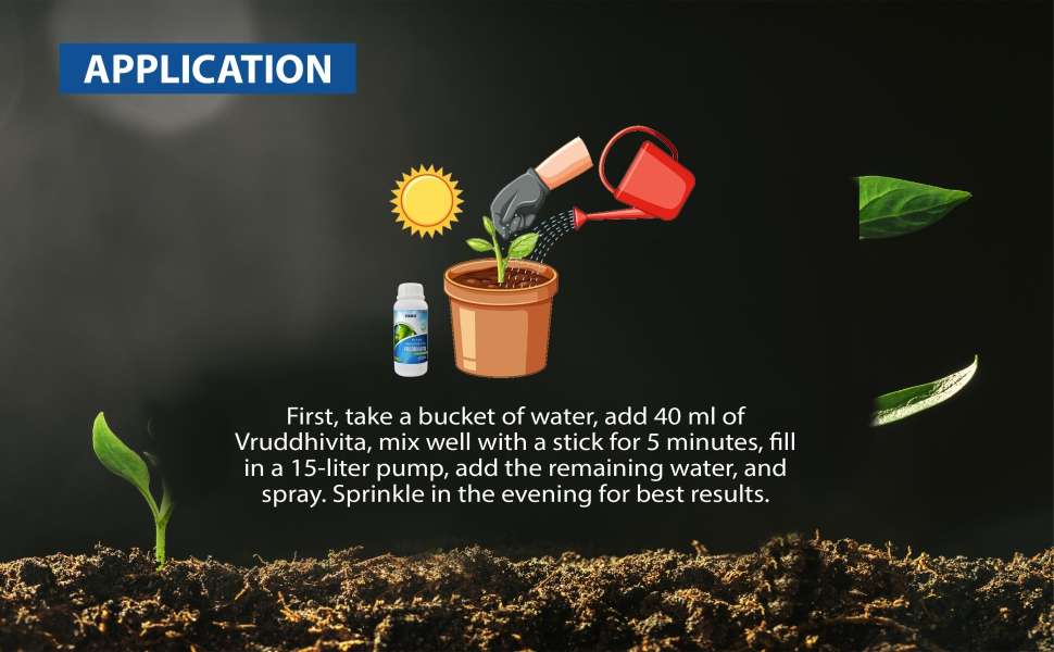 Note:- Before use, take water in a bucket, add 35-40 ml of Vriddhivita, mix well, then pour it into the pump and spray.